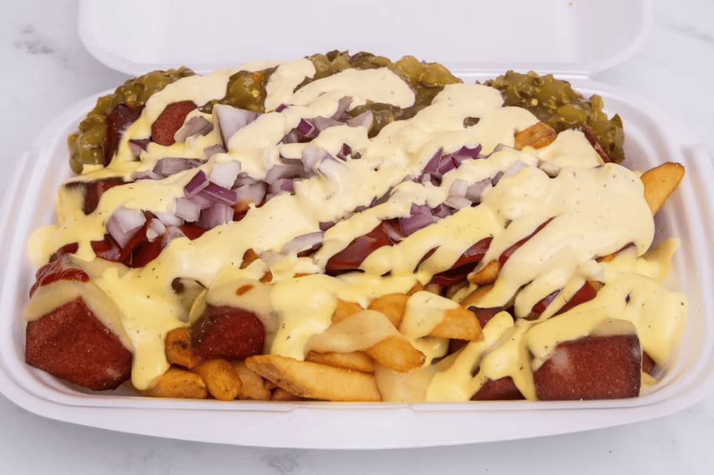 9,90€ / 13,90 € Guacamole, sallad, paprikasylt, biff, lök, creme fraiche, rostad lök, cheddar